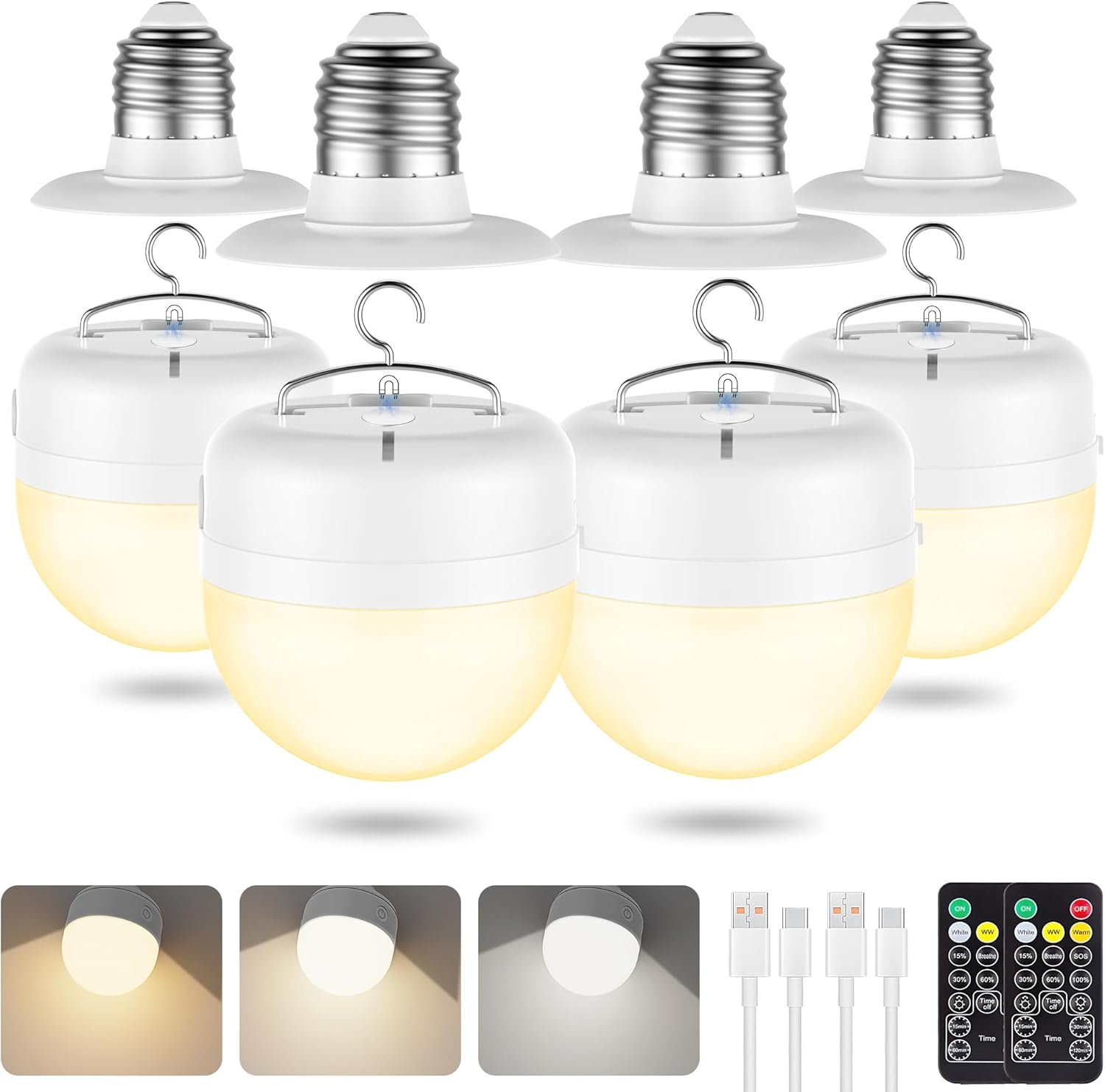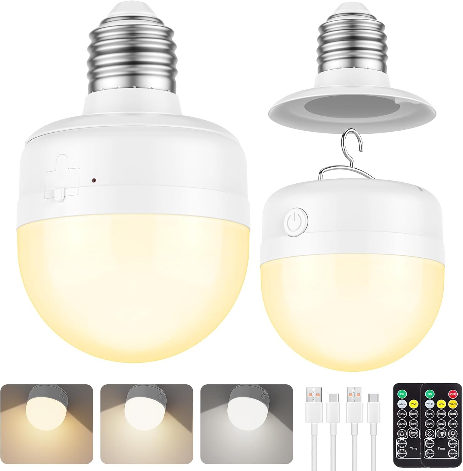 - Detachable Charging & Long-Lasting Battery: the removable light blubs can be charged via USB-C for portable use, The built-in 2000 mAh high-capacity battery provides up to 10 hours of light on low brightness and several hours on high brightness (actual runtime may vary depending on usage and battery age). No more replacing AA batteries or worrying about leaks
