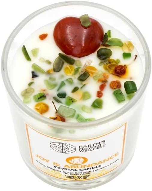 Housed in a glass container, this candle features a Green Jade and Carnelian crystal at its heart, chosen to symbolize joy, abundance, and positive energy. After the candle has finished burning, the crystal can be kept as a personal token or placed in a sacred space as a reminder of intention and mindfulness.