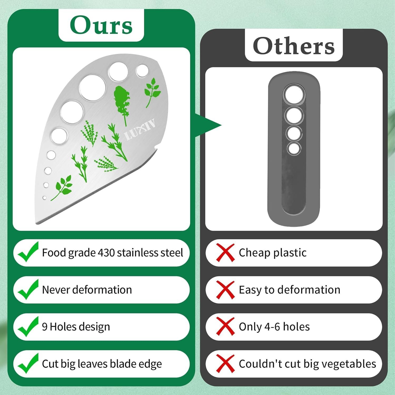 - Stripping and Cut Leaf: Herb pealer using 2 in 1 function, not only could stripper the leaf of the herb, but also could cut big leaves of the plant. Humanized design is convenient to use. Plastic protection covers are safer