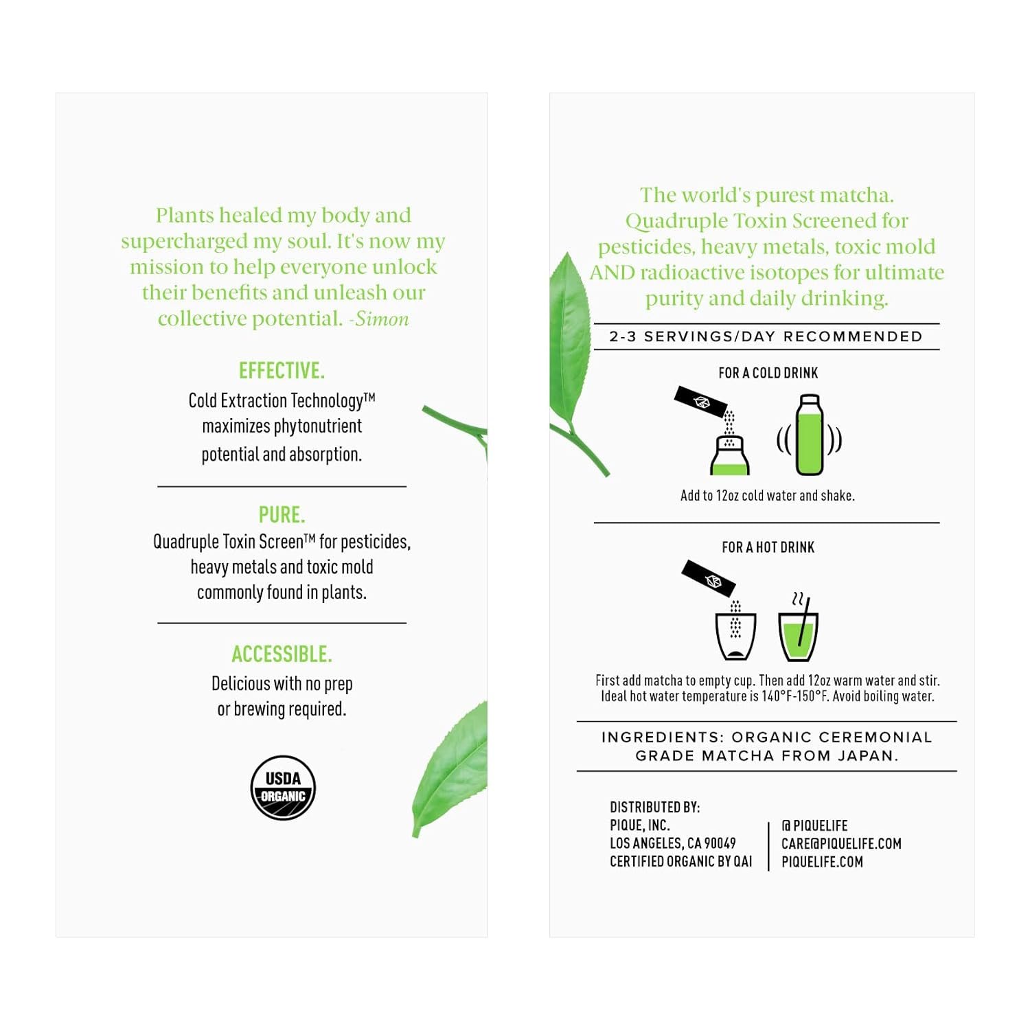 - [100% USDA Organic Matcha Powder]: First matcha quadruple toxin screened and made with all natural ingredients, grown without pesticides or harmful fertilizers; naturally gluten-free and vegan
