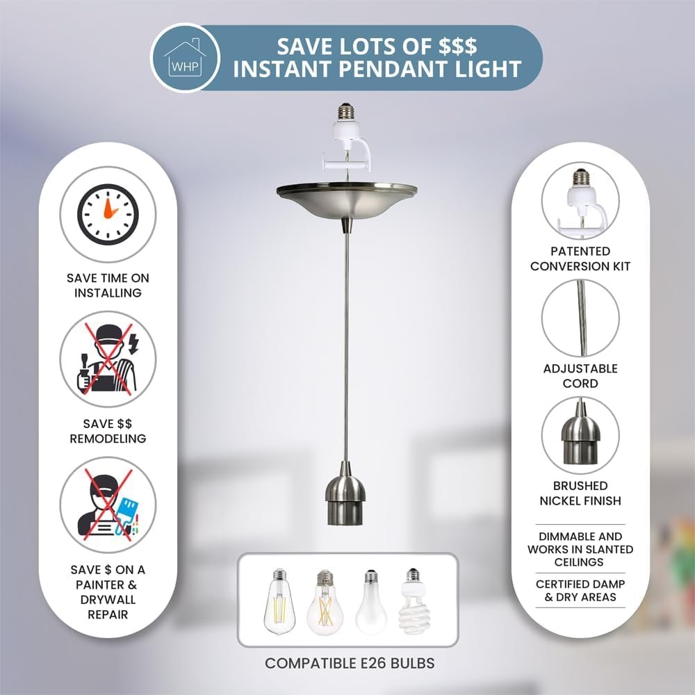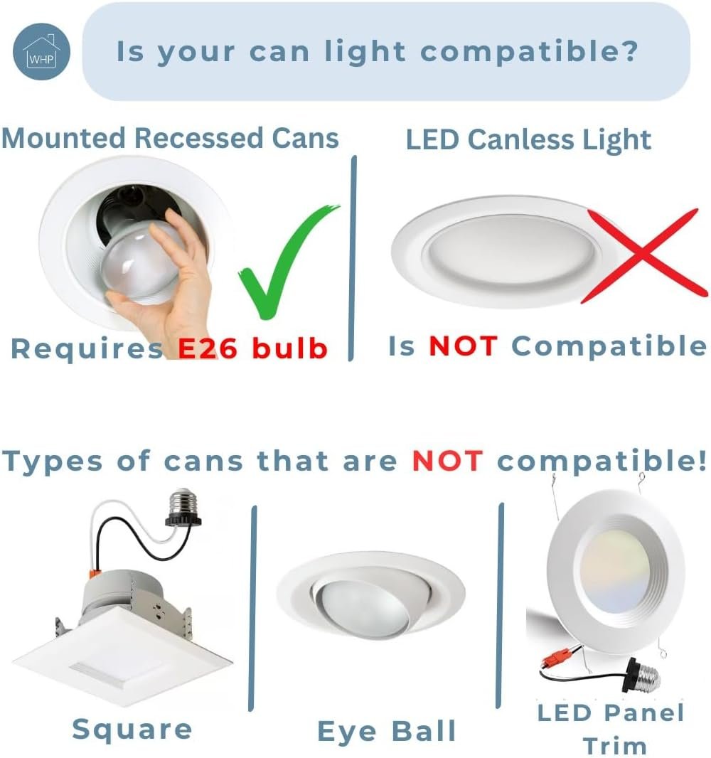 - NOTE: Confirm you have a medium-based E26 bulb inside your recessed can housing before ordering. This product does NOT work in all recessed cans. Requires a high hat, new construction mounted recessed can light to be compatible with the Instant Pendant Light. If you only see a retro-fit, one-piece LED disc baffle panel, you do NOT have a can that supports our innovation. NOT compatible with square recessed cans or eyeball recessed cans.
